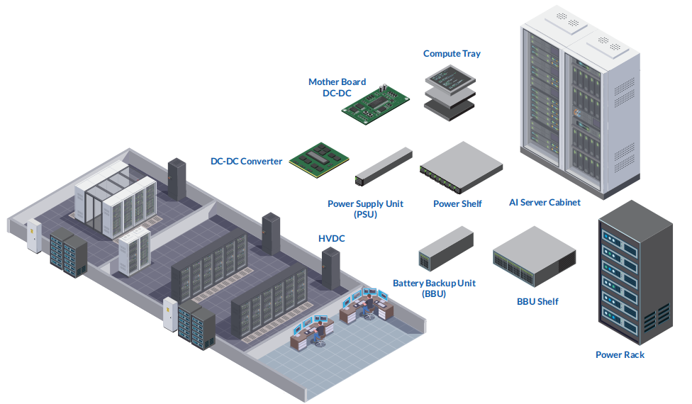 云端运算、人工智能(AI) 与高效能运算 (HPC)的快速发展,资料中心对高效能、高可靠度的服务器电源与电池备援模组(Battery Backup Unit,BBU需求增加。为满足此趋势,业界致力于提升电源转换效率与供电稳定性,并确保BBU在电力中断时能即时提供备援电力,维持系统正常运行。