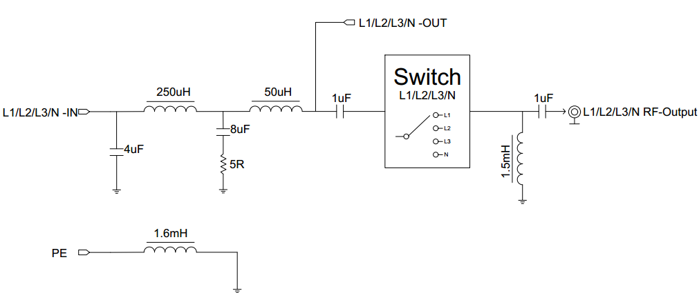 5 (转换开关):分别将 N、L1、L2、L3 输出信号切换到 RF OUTPUT 端口。