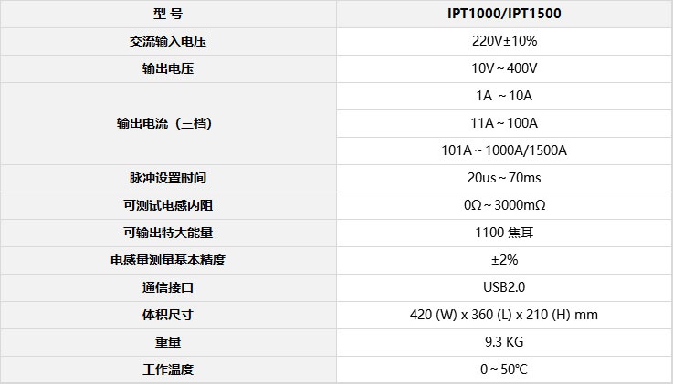 随着大功率电力电子和新能源产品的高速发展,功率电感的电流定额也日益增长,目前已经有超过1500A电流的功率电感的需求。工程师最关心的是功率电感在大电流下的电感量衰减是否满足设计要求,是否饱和以及饱和的程度如何。这个问题对设计一个高可靠性低成本的电力电子和新能源产品至关重要。对此我们设计了一款脉冲式大电流电感测试仪IPT1000/IPT1500,具有高性能、低成本、体积小、重量轻等优势: