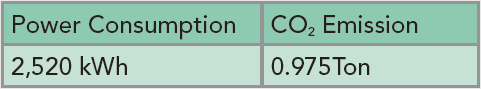 - * 0.35kW x 30hrs x 30days x 12months = 2,520kWh;2,520kWh x 0.387kg = 975kg