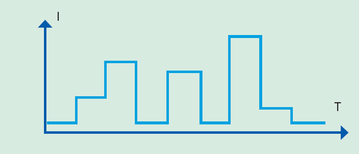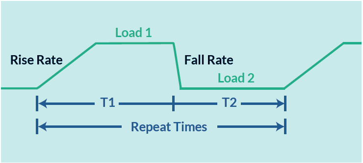 63700系列提供可编程动态负载(动态电流负载CCD)模式,右图所示为可编程的参数:设定电流高/低准位、T1/T2、爬升率/下降率与执行次数。除上述基本参数可设定外,还可让使用者设定一段时间的重覆次数,范围为1 ~ 65535。