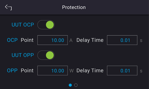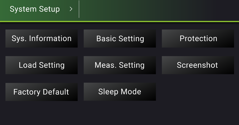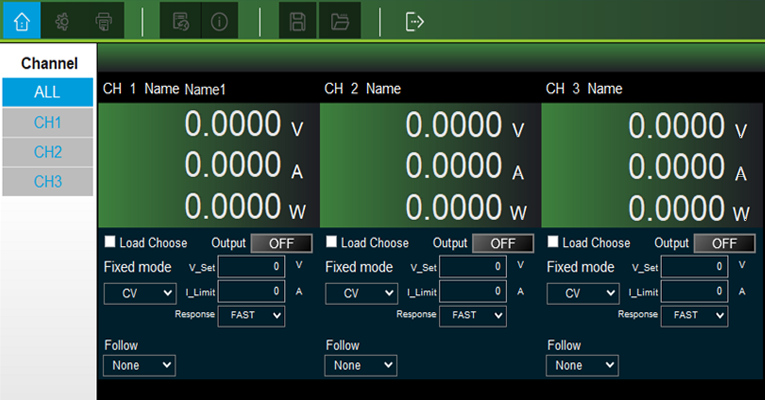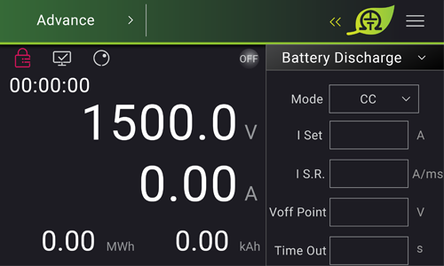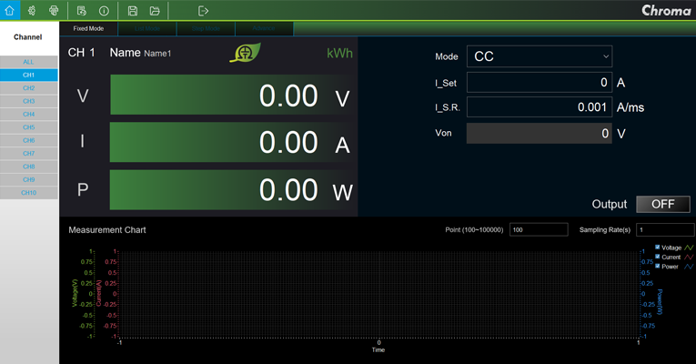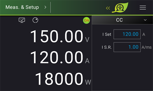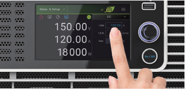 手动操作部分,采用5吋的彩色触控萤幕,可同时显示量测值与设定值,友善的人机接口让用户有更直觉的操作体验,除触控萤幕外,也保留实体旋钮与负载开关按键,可精准快速的进行微调设定。