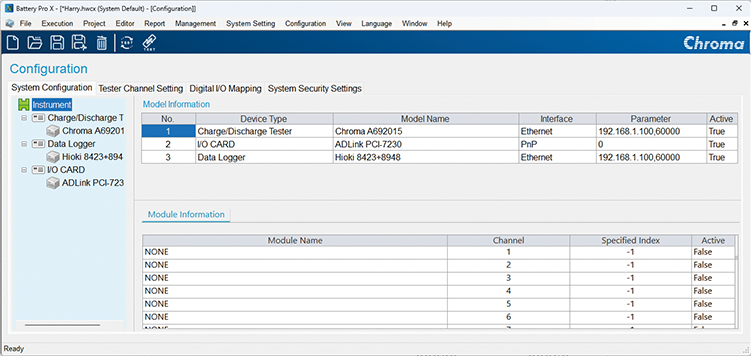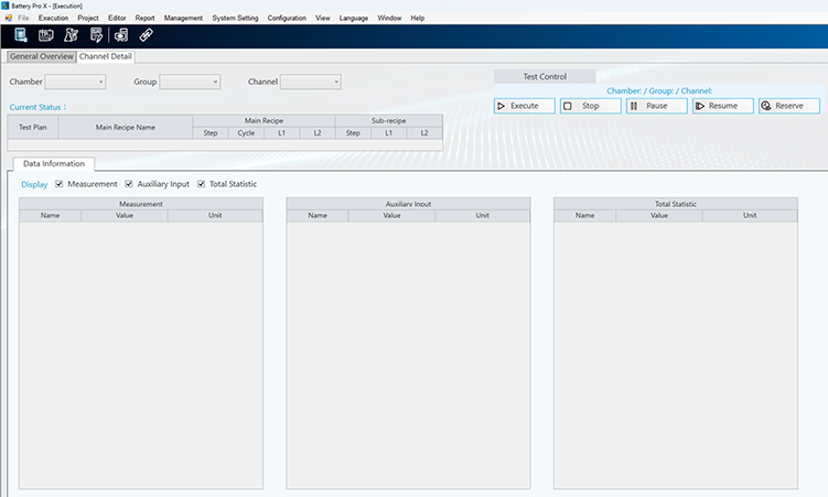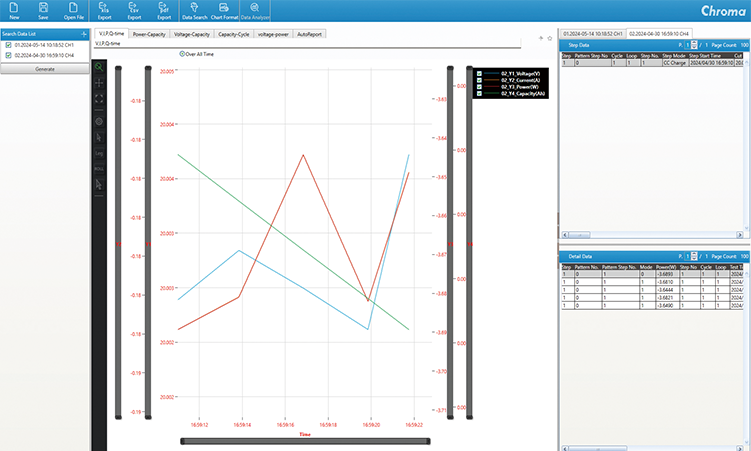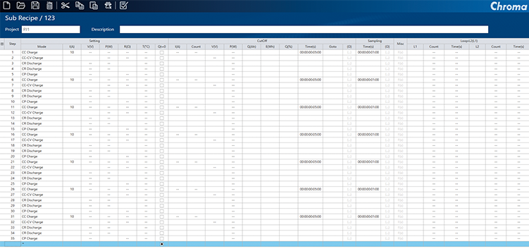 Chroma 17020C系统搭配「Battery Pro-X」软件,具备弹性的编程功能,测试工步的编辑与执行接口直观且简便。该系统提供图形化测试流程创建、预定义测试模板、实时数据监控以及与外部设备的无缝整合等功能,显著提升了测试配置的效率与准确性,满足各类复杂测试需求。